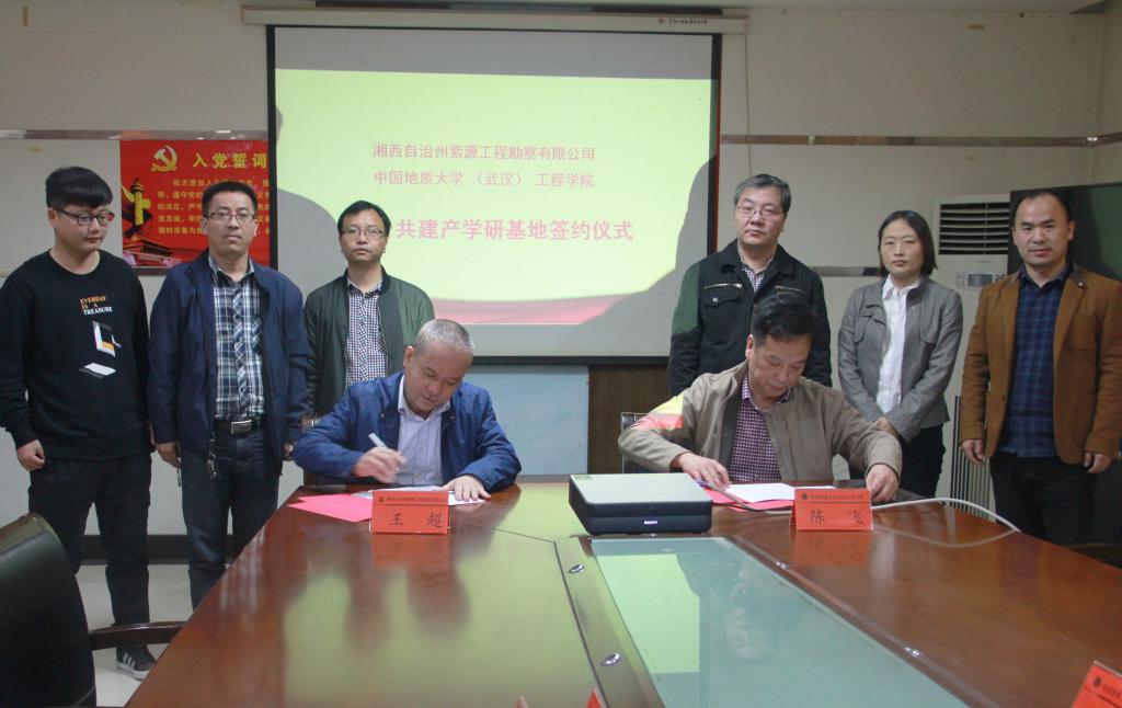 3月16日上午,在湖南省有色地质勘查局二四五队隆重举行了beat365官网与湘西自治州紫源工程勘察有限公司校企合作暨共建产学研基地揭牌仪式。beat365英国官方网站党委书记陈飞,湖南省有色地质勘查局二四五队队长、湘西自治州紫源工程勘察有限公司法人代表王超和双方单位相关人员出席了签约仪式。