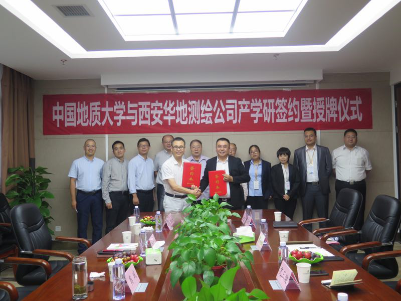 2019年9月15日-9月17日,beat365英国官方网站党委副书记江广长、副院长窦斌、勘察与基础工程系主任卢春华、姚爱国教授、院工会主席蔡记华教授及工程地质与岩土工程系葛云峰副教授一行赴西安,先后走访了陕西西探地质装备有限公司和西安华地测绘科技有限公司,并与陕西西探地质装备有限公司召开了产学研合作基地揭牌仪式,与西安华地测绘科技有限公司签订了产学研合作协议并进行揭牌。
