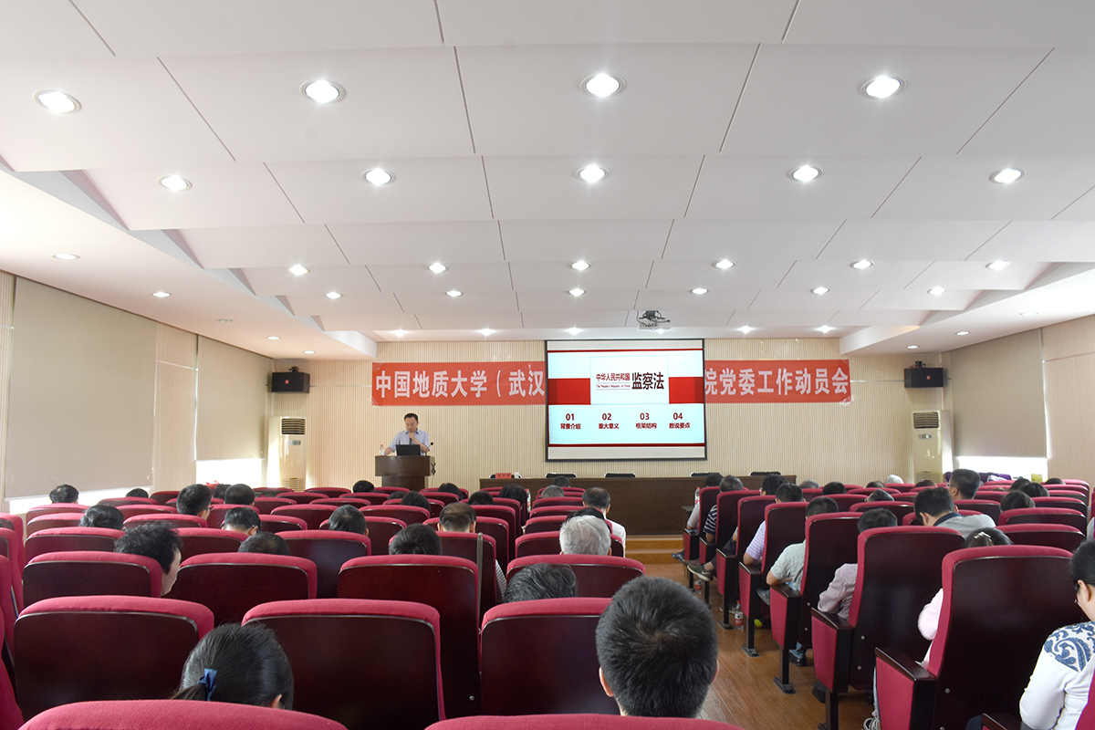 2019年5月24日下午,为学习贯彻《中华人民共和国监察法》实施依法治院兴院,院长焦玉勇同志带领beat365英国官方网站全体教职工在418学术报告厅,共同学习了《中华人民共和国监察法》。