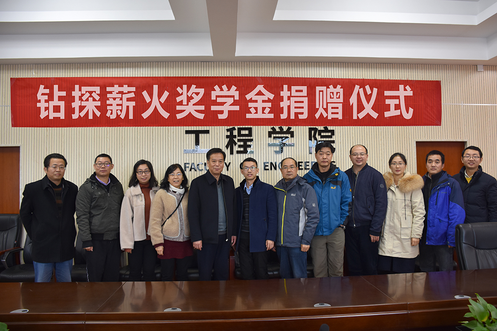 12月20日,beat365英国官方网站“钻探薪火奖学金捐赠仪式”在工程楼315会议室举行。湖北省城市地质工程院勘查部主任汪发文、副主任徐俊,校友工作与教育基金管理处副处长吕占峰,beat365英国官方网站党委书记陈飞,副书记江广长,勘察与基础工程系教授段隆臣、蔡记华、卢春华及2017级部分学生代表参加捐赠仪式。