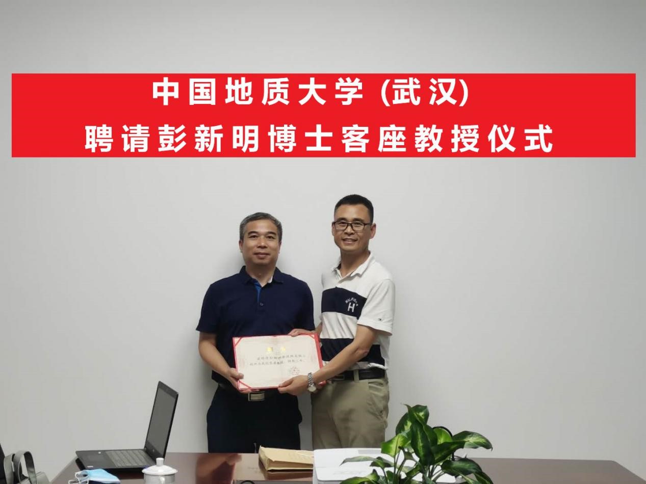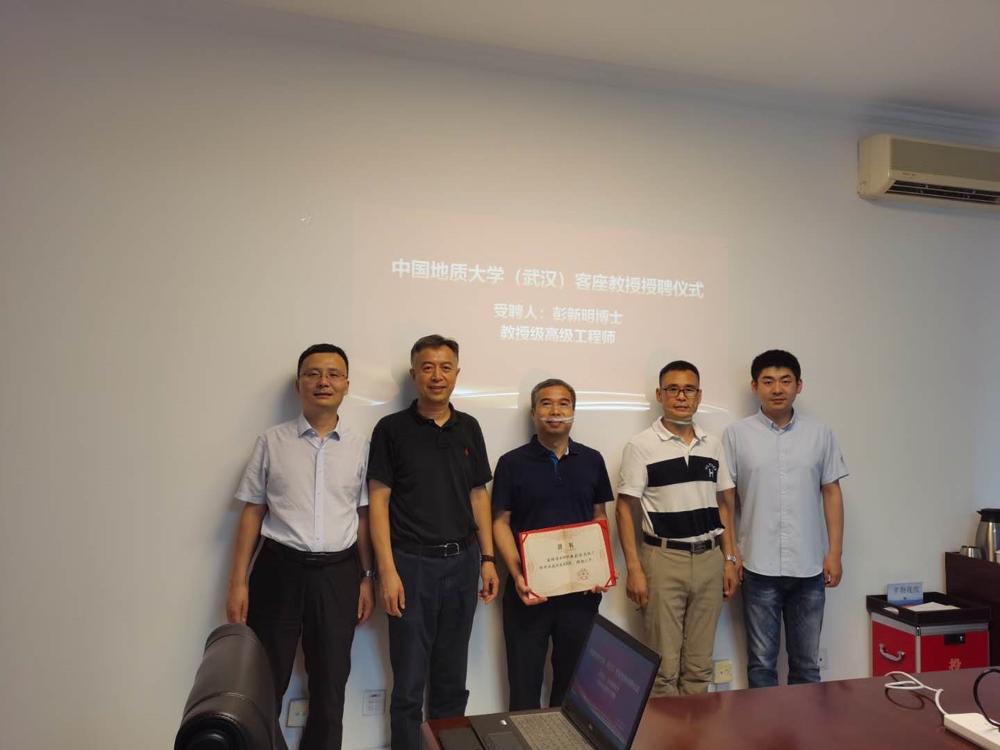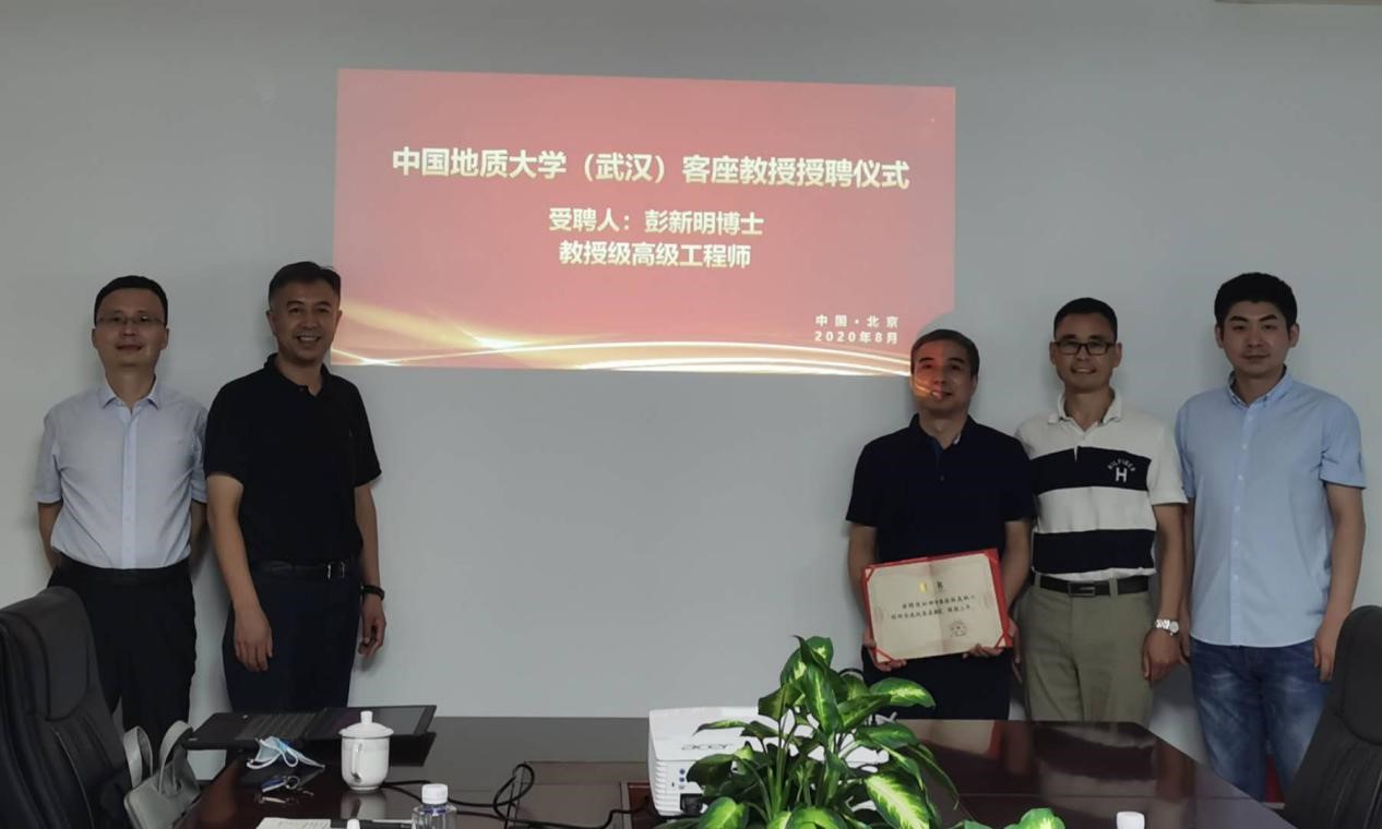 8月12日下午,beat365英国官方网站(武汉)聘请彭新明博士为客座教授的仪式在北京市地质勘察技术院217会议室举行。北京市地质勘察技术院行政负责人王立发、院副总工程师兼资源勘查中心主任彭新明及相关人员出席仪式。仪式由beat365英国官方网站副院长窦斌教授主持。