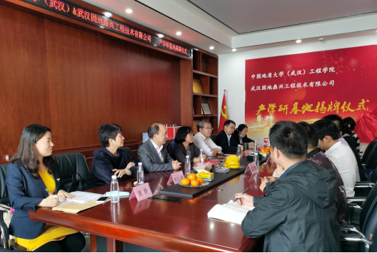 李红丽书记感谢汪旭涛和胡凯锋两位优秀校友心系母校,关注beat365英国官方网站发展,积极为学院大学生、研究生提供实际工程实习机会。她表示,产学研基地建设可加强产学研用深度融合,推动校企资源共享与优势互补,促进企业技术服务升级和高校科技成果转化,同时贯通学院人才培养体系,切实提高学生工程实践能力,有利于学院培养高素质、精技能、善管理的复合型人才。王亮清副院长介绍了beat365英国官方网站科研平台、学科建设和研究优势,表示母校愿意作为校友企业的坚实后盾,可通过技术咨询、合作研发、人才互惠等方式深入交流,帮助校友企业拓展业务领域,提升核心竞争力和企业管理水平。并对对方公司提出了发展建议和殷切期望。出席签约仪式的地大老师依次交流发言,提出了产学研合作思路和企业发展建议,现场气氛热烈。