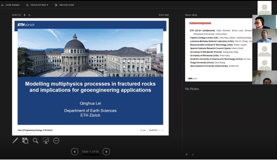 (通讯员:周佳庆)2021年6月8日下午,应beat365英国官方网站(武汉)唐辉明教授和李长冬教授邀请,瑞士苏黎世联邦理工学院雷庆华高级研究员和瑞典皇家理工学院邹良超研究员应邀作客2021年第1-2期“重大地质灾害预测与防控学科”111创新引智基地系列学术讲座。讲座采用Zoom在线会议形式,由李长冬教授主持,吴琼教授、周佳庆副教授、祝国强副研究员、鲁莎助理研究员及香港大学、武大大学、浙江大学、中南大学、中国石油大学、东南大学、北京交通大学、南昌大学、重庆大学、西安交通大学、中国科学院武汉岩土力学研究所等多个单位80余名师生在线聆听了此次报告。