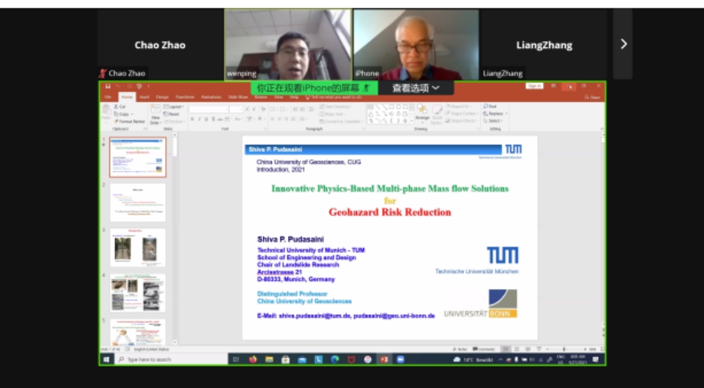 (通讯员:邢磊 赵超)2021年9月27日下午,应“重大地质灾害预测与预防学科”111创新引智基地唐辉明教授和龚文平教授邀请,德国慕尼黑工业大学Shiva P. Pudasaini教授通过Zoom meeting平台为beat365官网师生作线上学术报告。beat365英国官方网站龚文平教授主持报告会,40余名师生在线聆听了此次报告。