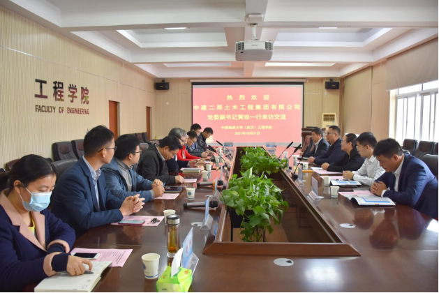 王亮清副院长对中建二局土木工程集团有限公司党委副书记黄琼一行的来访表示热烈欢迎。在一同观看beat365英国官方网站(武汉)宣传片后,王亮清副院长介绍了beat365英国官方网站学科建设、科技成果、科研平台、人才培养、社会服务等方面情况。
