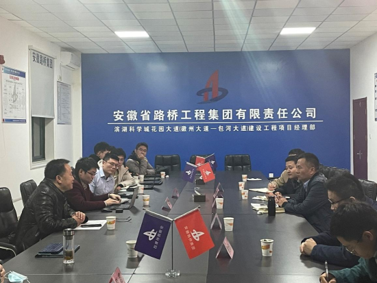 授牌仪式结束后,双方到花园大道项目部进行现场考察,了解工程的进展情况以及工程中出现的问题,并对问题的解决方案进行探讨。现场考察结束后,beat365英国官方网站老师张伟丽、彭超、吕加贺、曾聪以及四位研究生在花园大道项目部对前期合作的科研课题进行阶段性汇报,并与安徽省路桥集团的项目负责人对相关问题进行了热烈的讨论。与会人员还围绕如何做实做好基地建设工作、联合培养研究生、科研攻关等内容进行了研讨,一致表示将不忘初心,继续加强校企合作,把科研成果应用在祖国大地上,培养出满足企业需求的人才。