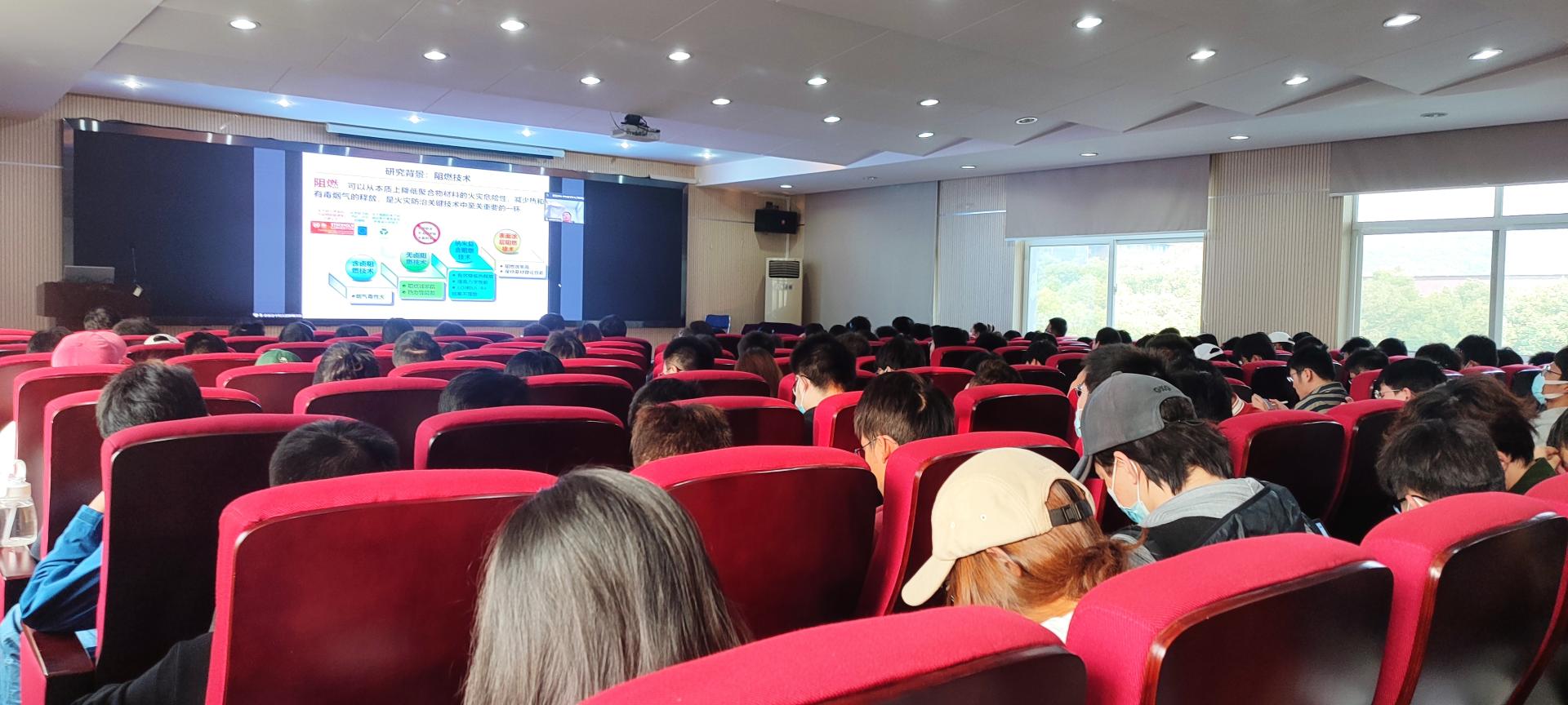 余彬教授以“高性能防火涂层的构建与应用”为题,介绍了防火涂层在火灾发生过程中的可以发挥的作用:包括隔绝热量传递、降低被覆基材可燃性以及抑制火灾蔓延等;并指出目前防火涂层存在防火效率低、粘附性差以及耐高温性能差等亟待解决的关键问题。针对以上不足,余彬教授重点介绍了团队构建仿生纳米涂层的方法,研制开发了多种具有高粘附性、高力学性能和耐高温的多功能型防火涂层,并重点研究了仿生涂层在木材、聚氨酯泡沫等基材中的防火性能。此外,余彬教授还介绍了团队目前在智能化火灾预警和火灾安全防护方面开展的部分工作。以石墨烯基防火预警体系为例,介绍了多种智能阻燃预警薄膜和涂层在火灾高温报警和火灾监测方面的应用。余彬教授从防火涂层的工作原理、涂层的构建、性能研究和场景应用等方面出发,系统、全面地介绍了高性能防火涂层的构建与应用,对提高师生防火和火灾处置能力具有指导意义。