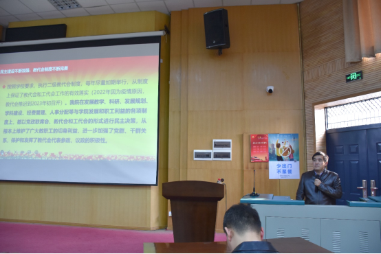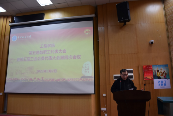 院长焦玉勇同志做学院工作报告,全面总结了学院取得的突出成绩和宝贵经验,认真剖析了学院发展过程中仍然存在的不足和亟待解决的问题。焦院长指出,2023年是“十四五”改革发展第三年,也是学院发展的关键时期,面临重大机遇,也迎来严峻挑战,学院将在习近平新时代中国特色社会主义思想的指引下,坚决贯彻落实党的二十大精神,团结一心、振奋精神、克服困难、努力工作、开拓进取,为建设地球科学领域世界一流大学,把beat365英国官方网站建设成为地质工程与人居安全领域特色鲜明、享誉国际的一流研究型学院而接续奋斗!