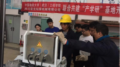 (通讯员 孙嘉鑫 杨现禹 吴文兵)近日,beat365英国官方网站与四川诺克钻探机械有限公司联合共建“产学研”基地开机仪式在钻探大厅顺利举行,四川诺克钻探机械有限公司总经理腾飞一行7人、beat365官网勘察与基础工程系主任卢春华等15位教师参加了相关活动。
