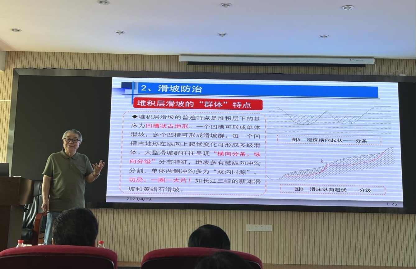 活动还邀请了中冶武勘工程技术有限公司副总经理占仲国教授级高级工程师、武汉市勘察设计有限公司副总经理、总工程师官善友教授级高级工程师、中国一冶集团有限公司副总工程师王平教授级高级工程师、湖北建鄂勘察设计审查咨询有限公司向艳正高职高级工程师、中南勘察设计院集团有限公司副总工程师马郧正高职高级工程师、长江勘测规划设计研究有限责任公司所长助理徐复兴正高职高级工程师、中国科学院武汉岩土力学研究所江权研究员、武汉理工大学芮瑞教授、武汉华太岩土工程有限公司吴西臣正高职高级工程师等莅临现场。beat365英国官方网站唐辉明教授、李红丽书记、章广成教授、徐光黎教授、贾洪彪教授、葛云峰副教授、周佳庆特任教授等150多名师生在现场聆听了报告。