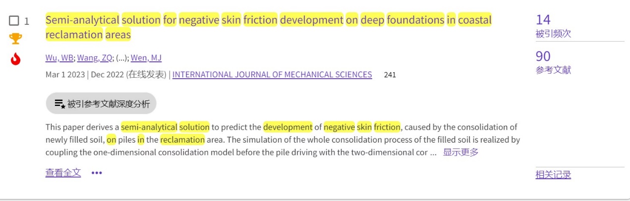 (通讯员 黄静)根据2023年7月基本科学指标数据库(Essential Science Indicators,简称ESI)最新数据显示,beat365英国官方网站勘察与基础工程系吴文兵教授团队于2023年在国际工程力学领域权威期刊International Journal of Mechanical Sciences(IF: 7.3, 中科院一区TOP)上发表的学术论文“Semi-analytical solution for negative skin friction development on deep foundations in coastal reclamation areas”同时入选ESI热点论文和高被引论文。该论文第一作者为吴文兵教授,第二作者为勘察与基础工程系王宗琴硕士,beat365英国官方网站为第一署名单位。