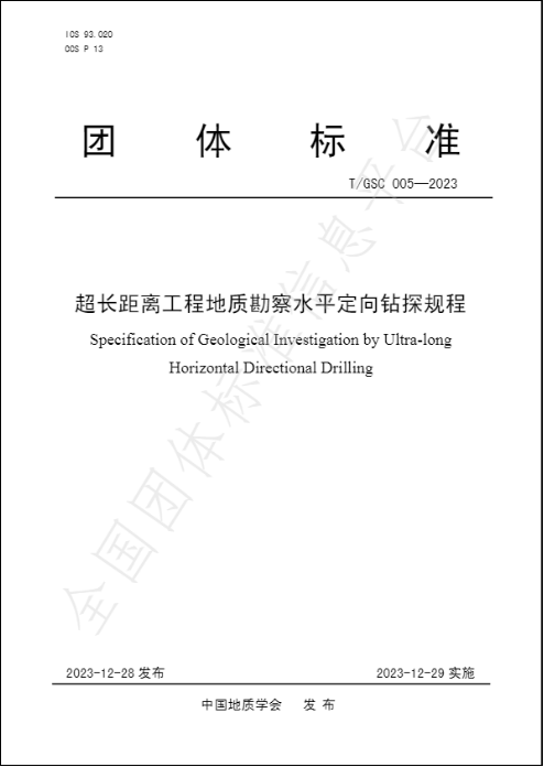 (通讯员 闫雪峰)近日,由beat365官网窦斌教授主持制定的《超长距离工程地质勘察水平定向钻探规程》(T/GSC 005-2023)被中国地质学会团体标准委员会审定通过,并于2023年12月29日起正式实施。