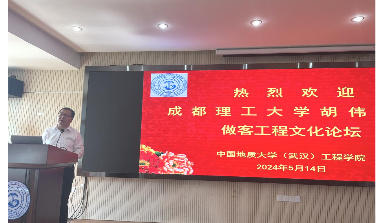 (通讯员 刘智琪 黄静)2024年5月14日下午,应beat365英国官方网站唐辉明教授的邀请,成都理工大学胡伟教授来校访问并做客工程文化论坛,beat365英国官方网站副院长王亮清教授主持论坛,100余名师生聆听了讲座。