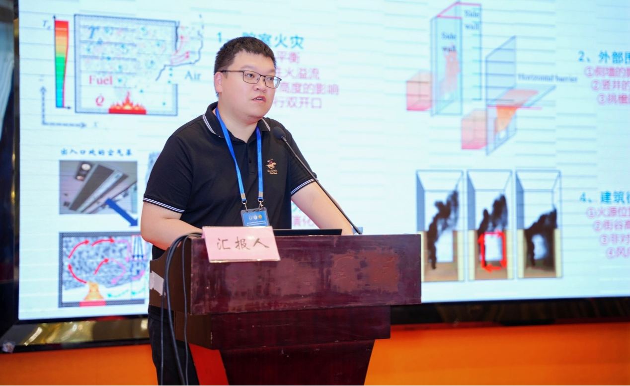 陆凯华副教授围绕复杂边界条件下建筑火灾及溢流行为研究做特邀主题报告。针对复杂边界条件下建筑火灾及溢流行为展开,相关研究揭示了建筑腔室火灾烟气输运及填充特征、间歇性火溢流临界判据,阐述了不同开口、外墙结构、空气幕等条件下的开口火溢流特性与物理主控机制,并讨论了不同环境风条件下羽流在高层建筑冠层的回卷行为与动力学判据,建立了典型参数的体系化表征模型。研究有助于科学指导高层建筑防火设计和外立面火蔓延阻隔技术发展,提升建筑本质生命力。