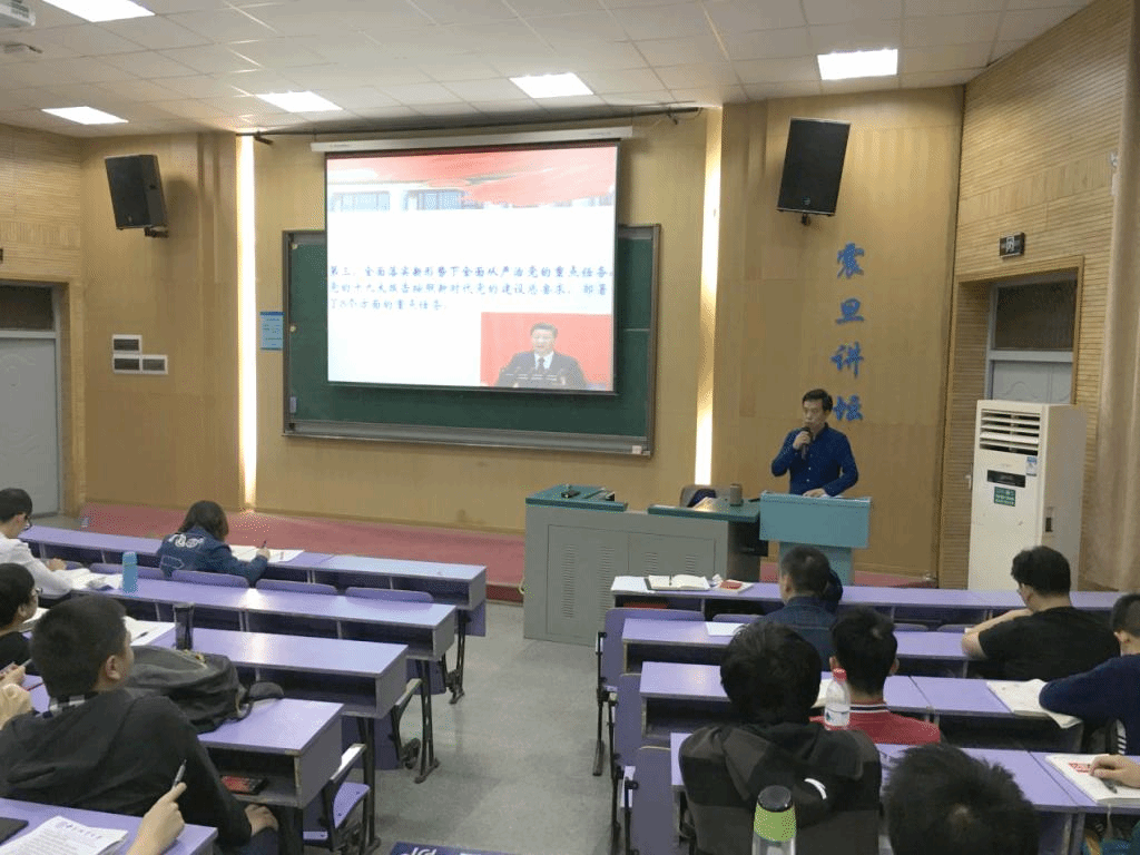 11月3日至4日,学院邀请了原校党委副书记丁振国、院党委书记陈飞、校党委统战部部长唐勤、马克思主义学院教授卢文忠、校党委组织部陈汉英、学工组辅导员文新等担任培训班授课老师,就“党员先进性教育”、“学习党的章程践行党的宗旨”、“端正入党动机及党员发展流程”、“党的十九大精神学习”、“入党材料格式规范”、“中国共产党与中国青年”、“党的统一战线”等内容开展了七次专题党课,对学员们进行了理论培训。