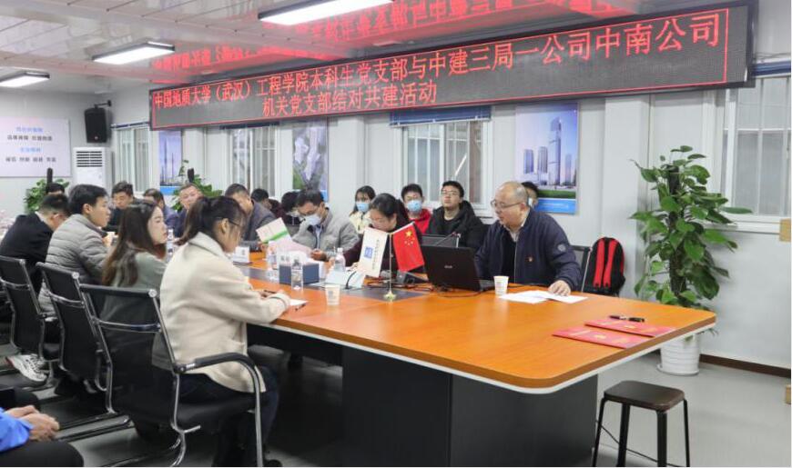 (通讯员:陈启维 李振华)为进一步探索校企合作人才培养模式,引导学生前置行业认知,中建三局一公司中南公司机关党支部与beat365英国官方网站道桥与建筑专业本科生党支部于2020年11月22日在光谷中心项目总部开展了“党建引领·校企共建”结对共建活动。中建三局一公司人力资源部副经理李骄健,中建三局一公司中南公司副总经理、超高层管理中心负责人梁劲松,副总经理王雅林,机关党支部书记陈婷华,beat365英国官方网站党委副书记江广长,学生办公室主任文新,辅导员王俊、李振华以及双方的党员代表参加本次活动。