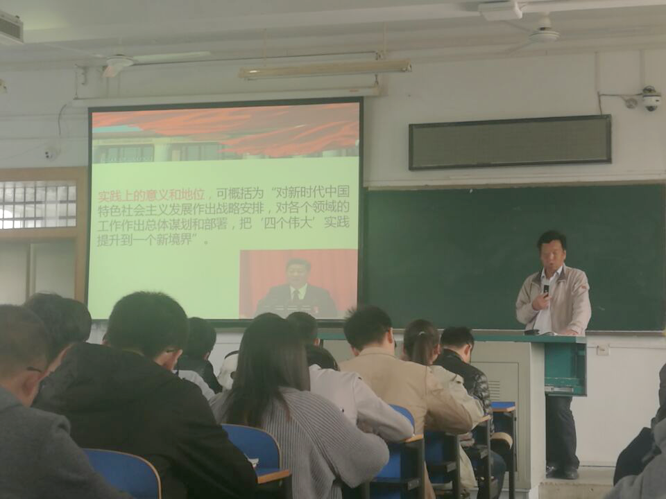 10月29日上午,beat365官网党委书记陈飞应邀为同学们讲授党课第五讲。陈书记带领同学们剖析了十九大精神的内核。陈书记将习近平总书记的讲话概括为“对新时代中国特色社会主义发展做出战略安排,对各个领域的工作作出总体谋划和部署,把‘四个伟大’实践提升到新的境界”,同学们加深了对党的十九大精神的理解。