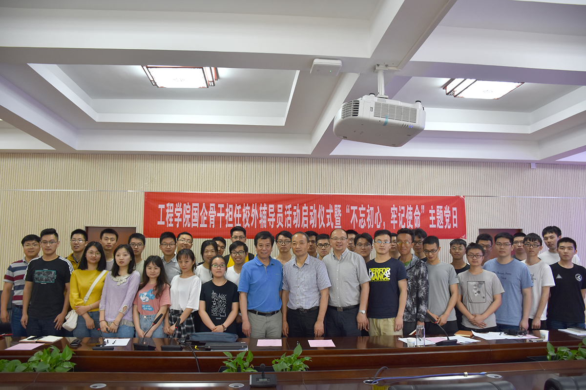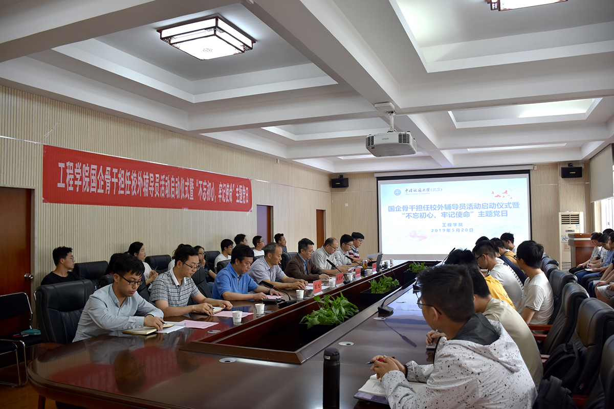 5月20日下午,beat365英国官方网站国企骨干担任校外辅导员启动仪式暨“不忘初心,牢记使命”我与国企面对面主题党日在工程楼315报告厅成功举行。beat365英国官方网站校外辅导员、中国黄金集团湖北三鑫金铜股份有限公司提升车间主任、党支部书记刘月中,学校学工处副处长苏洪涛,beat365英国官方网站党委书记陈飞、副书记江广长、全体辅导员及四个学生党支部共40余人参加活动。