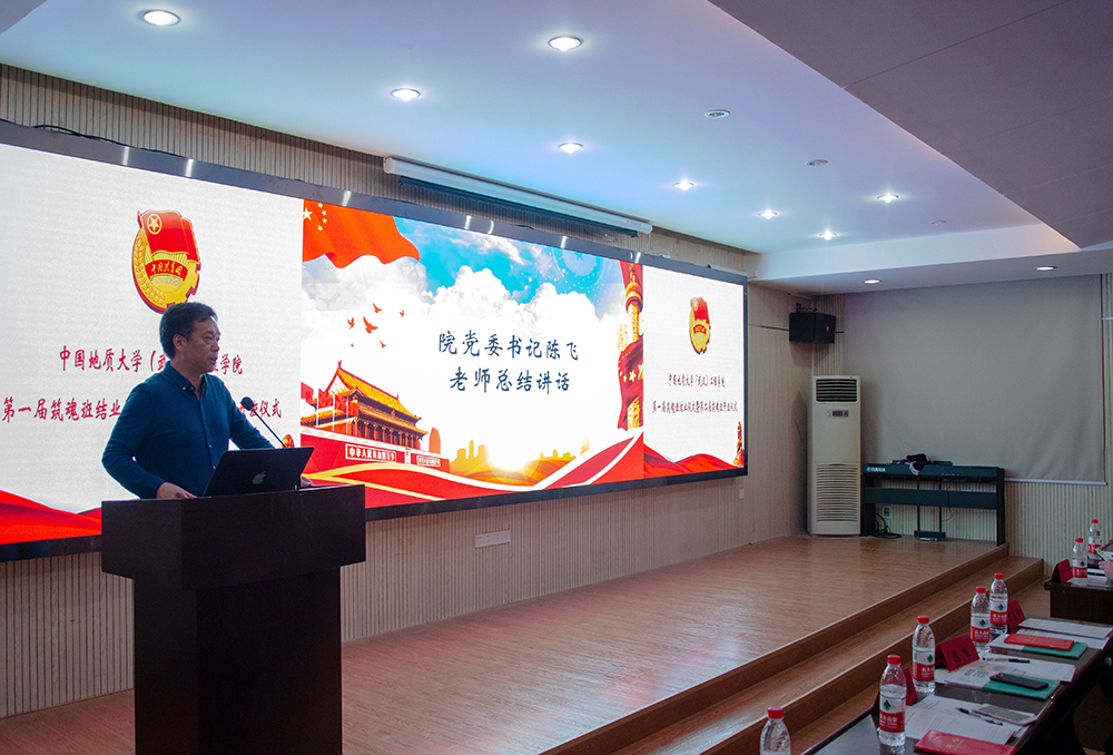 筑魂班理论导师郭关玉发言,她对第一届筑魂班学员的成长感到欣慰并发表了自己的看法:筑魂的涵义就是充实一个人的精神,而我们的精神就是对马克思主义和共产主义的信仰和为人民服务的初心。她寄语工程青年要“学马,言马,信马,行马”,在把握世情,党情,国情中牢记使命,砥砺前行。