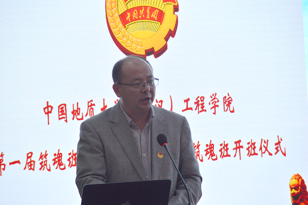 本次活动在嘹亮的团歌合唱声中拉开序幕,江广长首先围绕团中央、团省委、学校再到beat365英国官方网站启动青年马克思主义者培养工程的历史展开讲话,对筑魂班做了具体介绍。随后他为在座的同学介绍了beat365英国官方网站办学以来涌现出的优秀校友,希望以此来激励工程学子。他表示,青年一代工程人格局应更高,视野应更开阔,要不忘初心,砥砺前行,不断坚定自己的信念,提升思想政治境界,争取早日成为一名合格的马克思主义者。